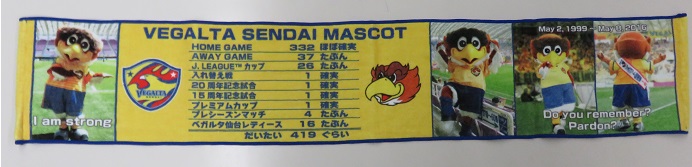 ◆ 『ベガッ太誕生日記念&Jリーグマスコット業界において果たしてこの試合数が多いのか少ないのかわからないけど最近ちょっと暇だったので数えてみたらとてもキリがよかったので出してみましたタオルマフラー』
