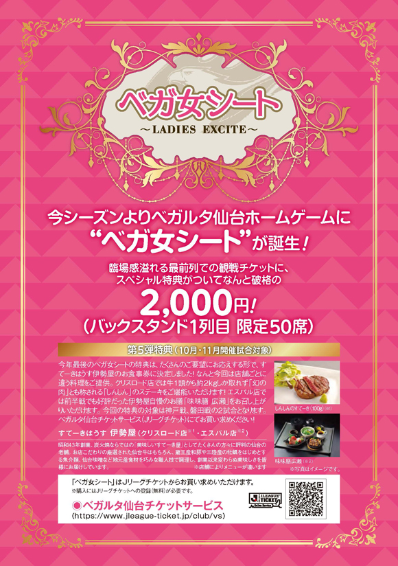 女性限定シート『ベガ女シート』 11月開催試合 発売のお知らせ