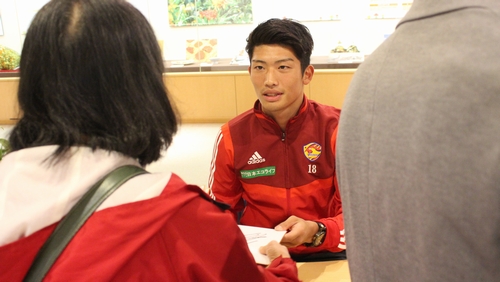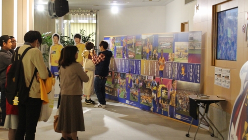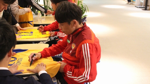 また、初日の16日には梁勇基選手、富田晋伍選手、道渕諒平選手によるサイン会を実施しました。整理券のためにお待ちいただいた人や帰宅途中に立ち寄った方などで賑わいを見せます。サイン会終了後には、選手がパネルへサインを入れ、パネル展後半には撮影スポットになっていました。