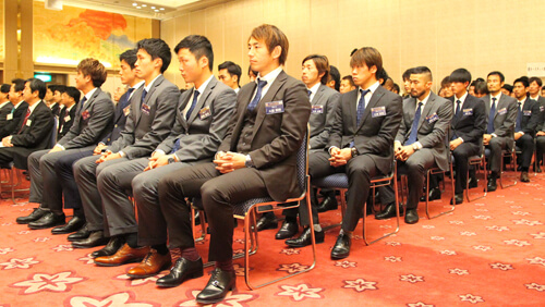 会場にスポンサーのみなさまをお迎えし、株式会社ベガルタ仙台代表取締役社長 西川善久、渡邉晋監督、選手、スタッフおよびチーム関係者が出席しました。