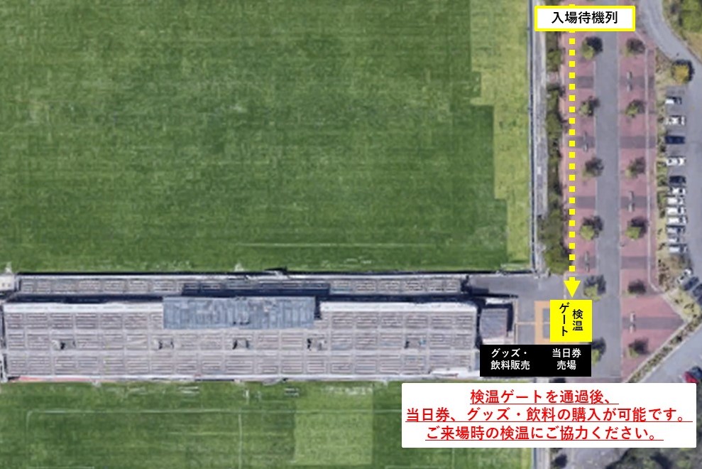 20メートル級の大きな横断幕等(個人横断幕を除く)の事前準備をされる方(ホームのみ)については、入場ゲートにおります係員へお申し出ください。その際、入場ゲートでの検温にご協力ください。