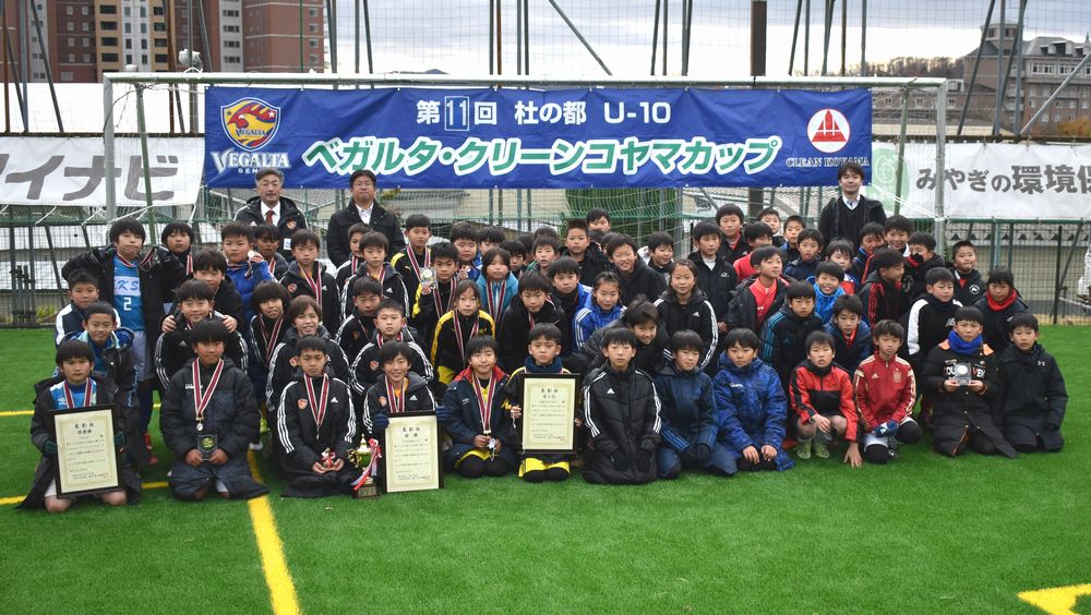 第11回目を迎えた「杜の都U-10 ベガルタ・クリーンコヤマカップ」。昨年は新型コロナウイルス感染拡大防止の観点より中止となったため、約2年ぶりの開催となりました。優勝はベガルタ仙台ジュニアとなりましたが、12月の本格的な寒さのなかでも、どのチームの選手も一所懸命ボールを追いかけ、真剣に試合に臨んでいる姿が印象的でした。ご協力いただいた関係者のみなさま、大会にご協賛いただいた協賛社のみなさま、チーム関係者および保護者のみなさま、ご協力を賜り、誠にありがとうございました。厚く御礼申しあげます。この大会から一人でも多くベガルタ仙台の選手がでることを期待しております。