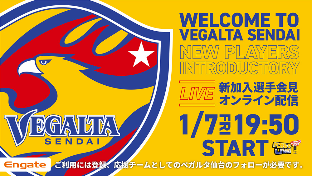 ベガルタ仙台は、1月7日(金) 19:50より、2022シーズンの新加入選手会見をエンゲート(配信/ギフティングアプリ)からオンライン配信いたします。