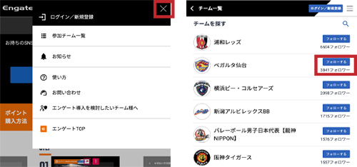 ②チーム一覧からベガルタ仙台をフォロー