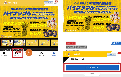 ・イベントページからFC琉球戦直前 パイナップルプレゼントに「エントリー」