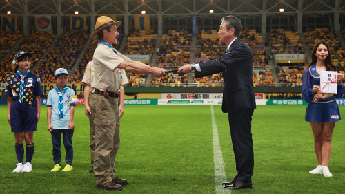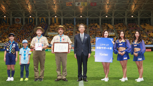 セレモニーに先立ち、ユアテック感動サポート賞の贈呈が行われ、2022シーズンはボーイスカウト泉第1団様が受賞しました。