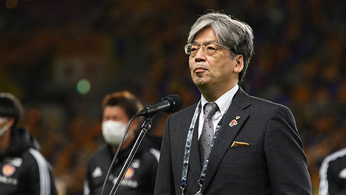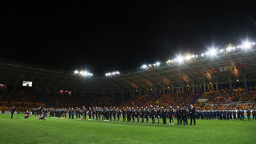 今日もまた、ベガルタのエンブレムをつけてトップチームを目指している子たちや、いつもホームゲームを支えてくださっているみなさんが一堂に会して、ここに整列していただいています。みなさんへの激励、そして感謝の意味で、もう一度拍手をいただければと思います。お願いします。