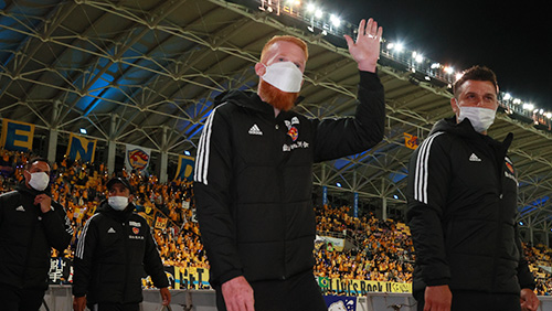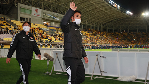 今日の勝利は、ここに来てくださったみなさまの力で勝ち取った勝利だと思います。この先、残り4試合、我々はみなさんと一緒に戦い、J1復帰を目指して戦います。どうぞよろしくお願いいたします。