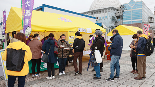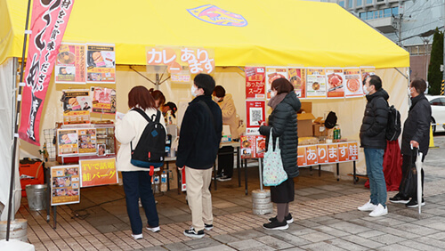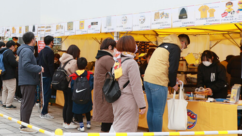 北ゲートエントランスでは大郷町、七ヶ宿町の物産展ブースやカレーは飲み物No.1決定戦グランプリ 銀結びの出店、キッズコーナー、ベガグッズの販売ブースを設置しました。どのブースも多くのお客さまで賑わいました。