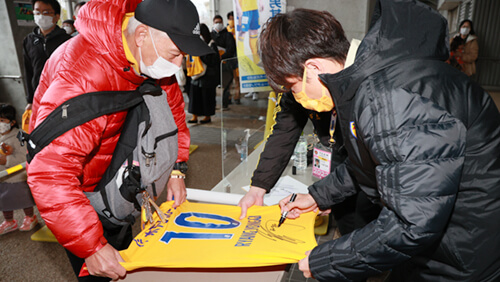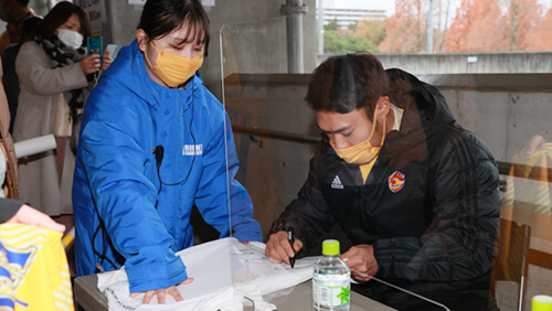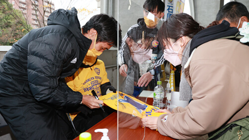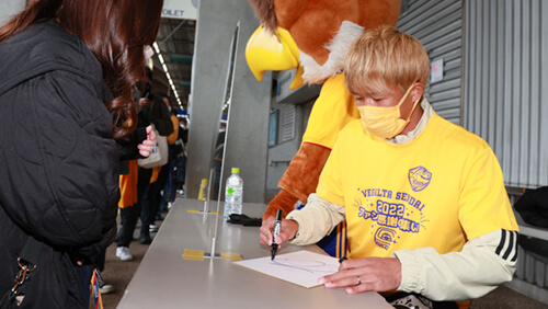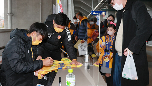 スタジアム内コンコースエリアでは選手サイン会を開催しました。3年ぶりの対面開催ということもあり、寒さを吹き飛ばすような、サインを求めるみなさまの熱気に包まれておりました。お目当ての選手サインをゲットできたでしょうか!?