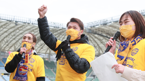 ここ数年は結果もついてこず、みなさんには苦しいシーズンを送らせてしまったことも、自分の力の無さです。チームに恩返しできなかったことを非常に悔しく思っていますけれども、今年のアウェーの金沢戦での声出し応援1発目の風景は、僕は忘れることはないと思います。ホームに帰ってきても、あの声援があったからこそ、自分自身もゴール前で体を張れたと思います。本当にこのスタジアムでプレーできたことは、自分の中で誇りに思います。
