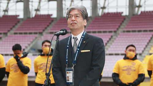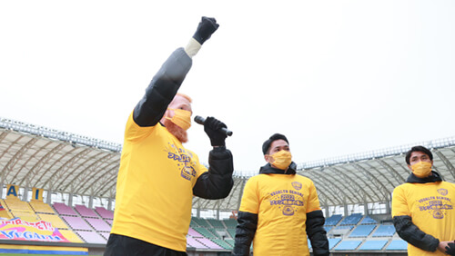 続いて、株式会社ベガルタ仙台代表取締役社長 佐々木知廣より御礼のあいさつを行い、最後にスタンドのみなさまと集合写真撮影をおこなって閉会となりました。