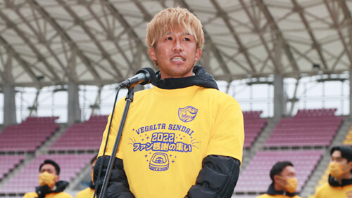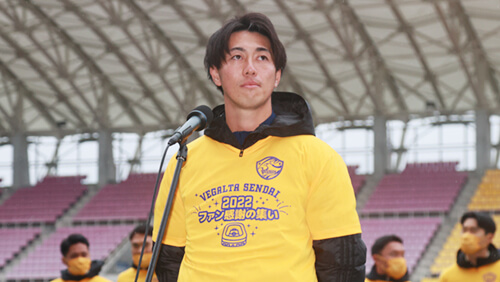 今シーズンでベガルタ仙台を離れることになりました。先程のサイン会でみなさんから温かい声を多くもらって、このチームがさらに好きになりました。僕はこの2年間で多くの悔しい思いをしたので、この気持ちをずっと持って、さらに這い上がれるようにがんばりたいと思っています。