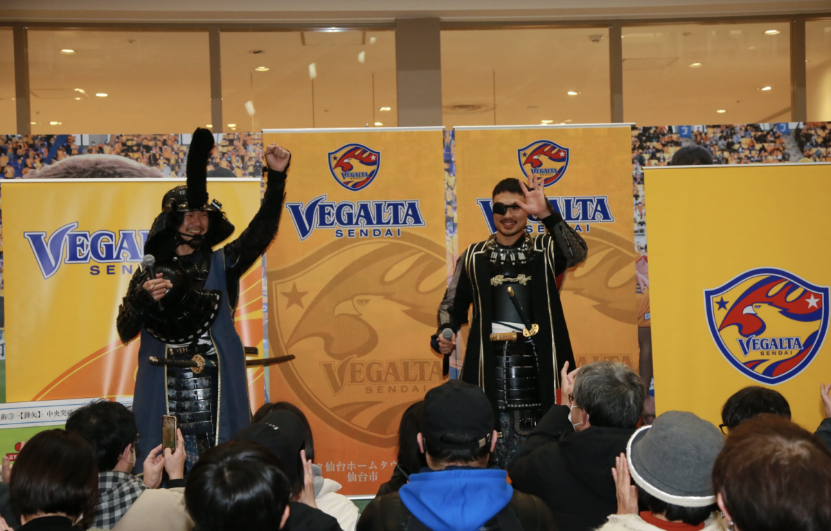 (ベガルタ仙台広報スタッフ)中山選手が加入時に「顔は戦国武将みたいで怖そうですが、根は優しいのでいっぱい話しかけてください」とコメントし、ファンやサポーターはもちろん、社員のあいだで話題になっていました。この機会だからと、イベントの担当者が伊達武将隊とコラボしたらおもしろいんじゃないかと中山選手に打診してみたら、意外とノリノリで受けてくれました(笑) 実施までのスケジュールは厳しかったのですが、セルバさんも相談に乗ってくださって、実現することができました。