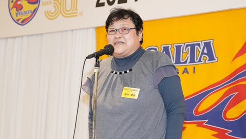 本日はこのような会を開いていただきまして、ベガルタ仙台のみなさま、監督、スタッフ、選手のみなさま、ありがとうございます。また、今年1年間一緒に活動していただいたボランティアのみなさま、おかげで2024シーズンのリーグ戦での活動が終わりましたので、ありがとうございました。