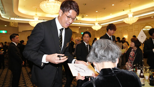 授与式に続き、ボランティア代表 植竹清美さまよりごあいさつをいただきました。ボランティアのみなさまへ2024シーズンの労いの言葉をかけられた後、恒例となりましたサイン会が始まりました。ボランティアのみなさまには思い思いにサインをゲットして、選手と談笑を交えた交流を楽しんでいただきました。