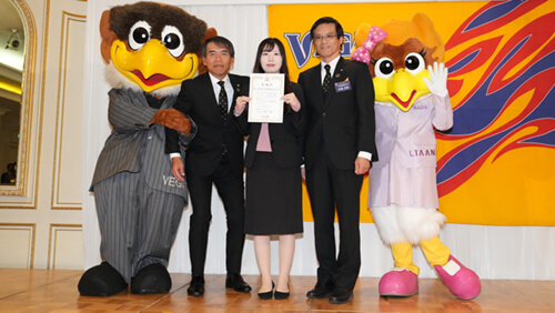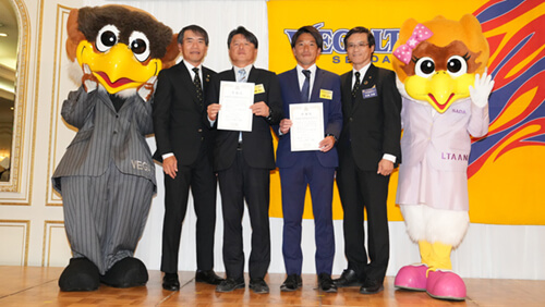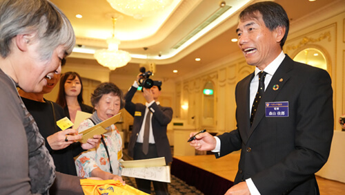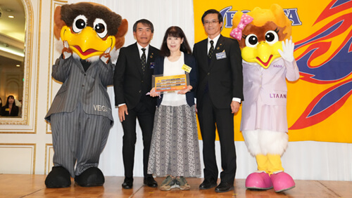 続いて功労賞表彰および感謝状の授与式を行い、代表取締役社長 板橋秀樹と森山佳郎監督から、受賞されたボランティアスタッフさま、団体さまへ感謝状と記念品を贈呈いたしました。