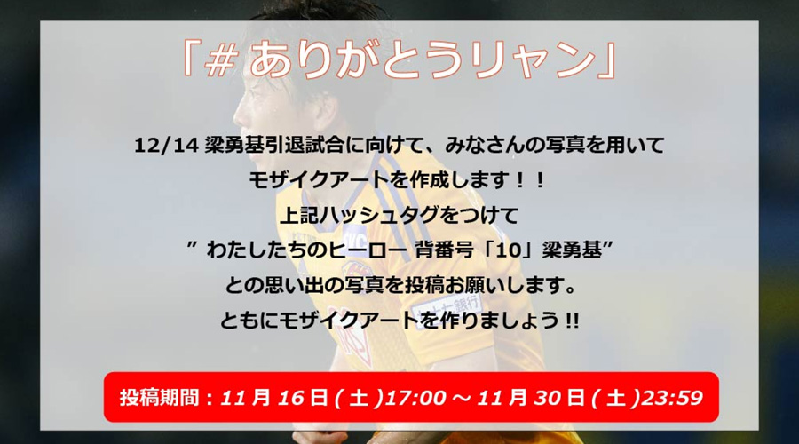 【梁勇基引退試合】モザイクアート作成のお知らせ