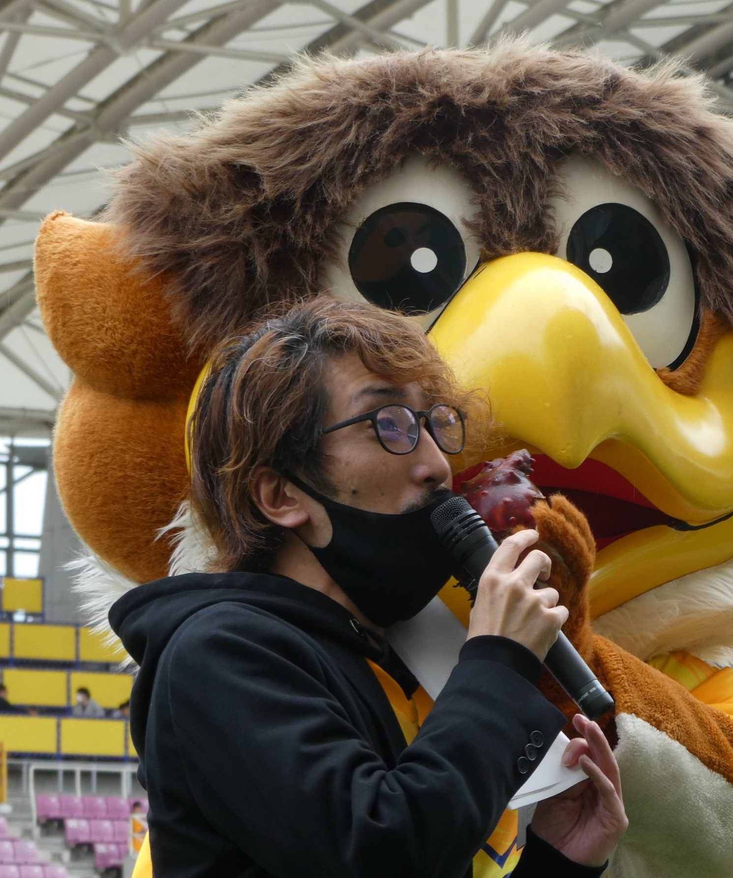当然、婚活パーティーのMCは、ぼくといづみちゃん!ただし、ぼくはしゃべれないのでサポートで