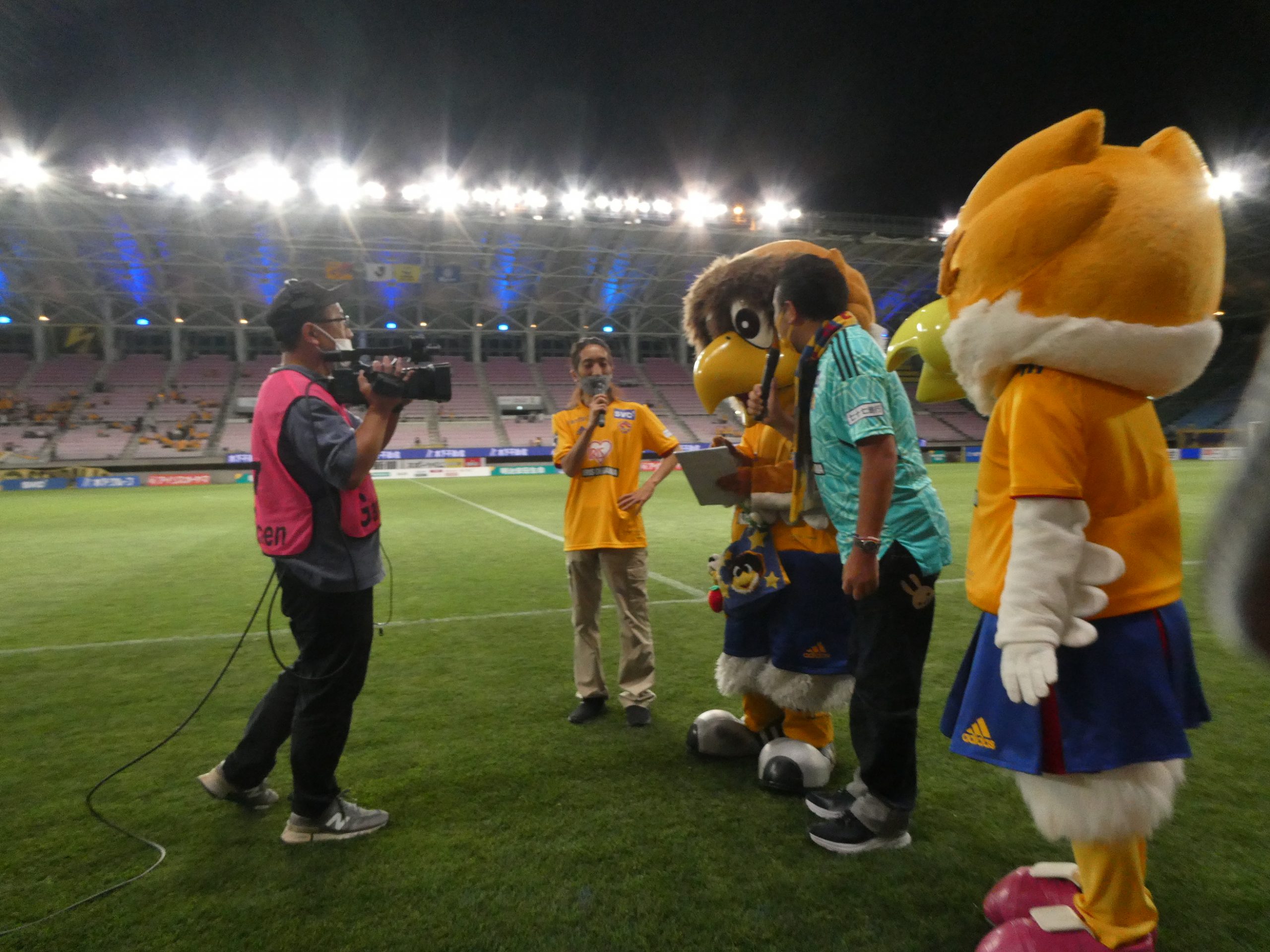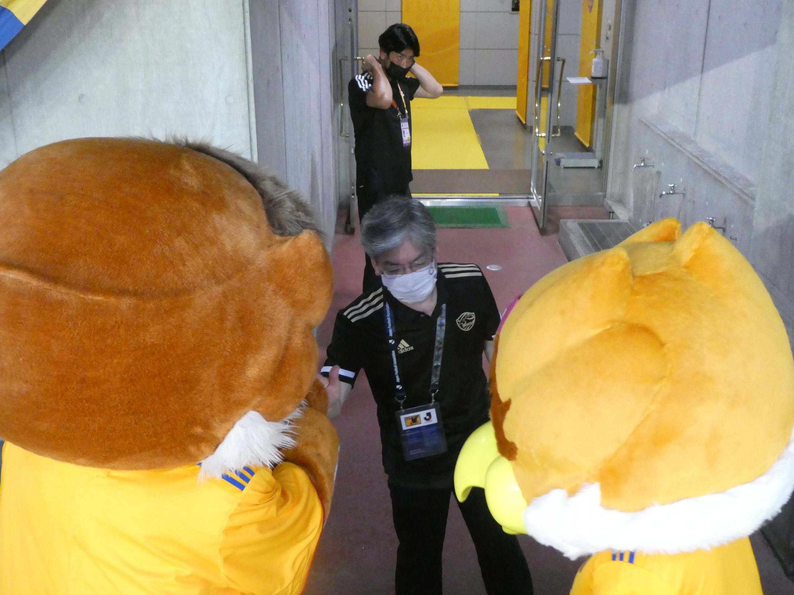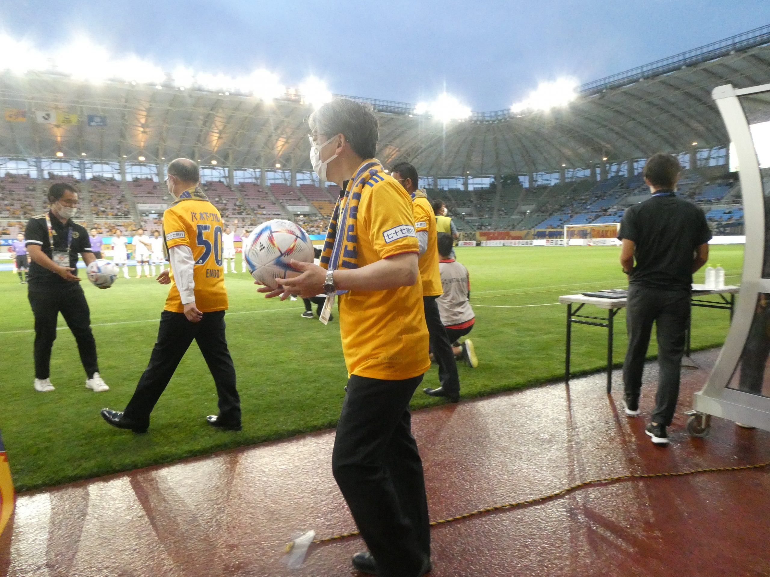 今さっきまで、スーツ姿で選手をピッチに送り出していたのに