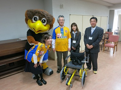 足こぎ車椅子(Profhand)を頂けるので宮城県内の施設に寄贈しています。