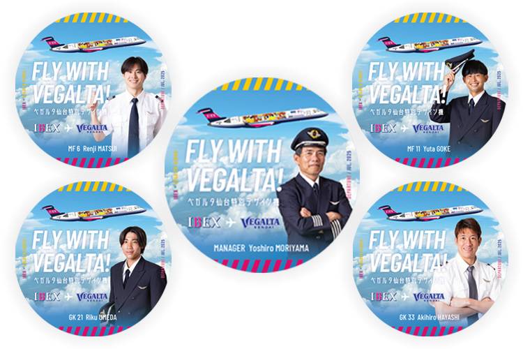 ベガルタ仙台ジェット機内での限定配布を予定しております。(数量限定、ステッカーはお選びいただけません。ステッカー:森山監督、#6松井選手、#11郷家選手、#21梅田選手、#33林選手)