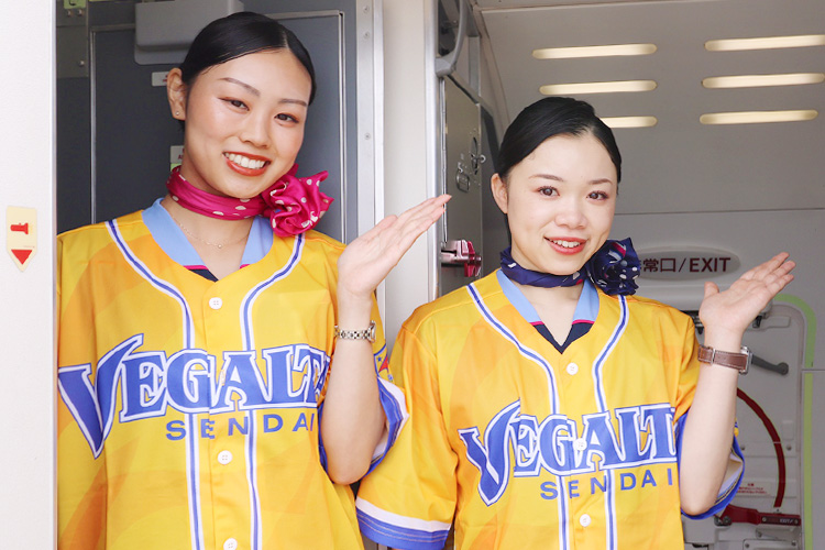 ベガルタ仙台ジェット機内限定で客室乗務員がベガルタ仙台のユニフォームを着用し、機内サービスを実施します(試合開催前日ならびに試合開催日。状況に応じてユニフォームの着用を見送ることもございます。予めご了承ください。)。