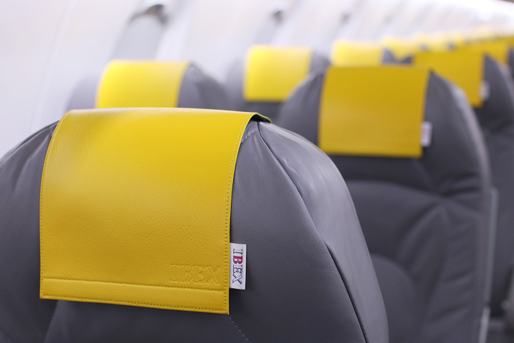 ベガルタ仙台ジェット就航期間中、チームカラー「ベガルタゴールド」をイメージしたヘッドレストカバーを設置します。