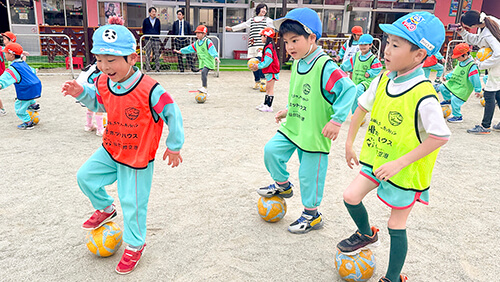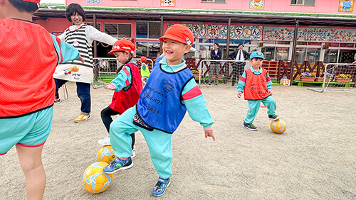 ベガルタ仙台では、子どもたちの運動能力を育むために、仙台市内を中心とした幼稚園、保育所(一部仙台市外も含む)を巡回訪問し、サッカー教室やチアダンス教室を実施しております。