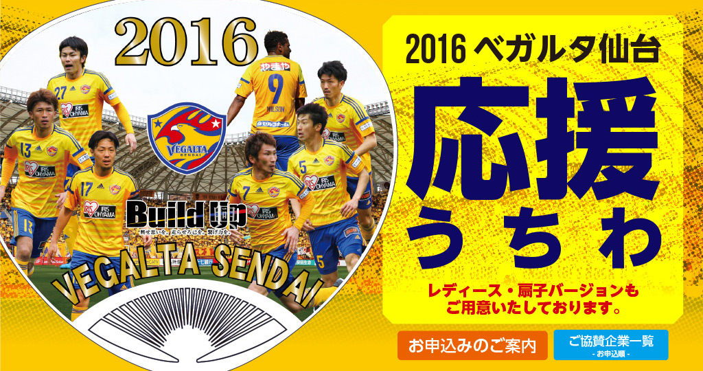 ぜひこの機会にご協賛いただき、御社広告入りの「応援」うちわでベガルタ仙台へのご支援をお願い申し上げます。