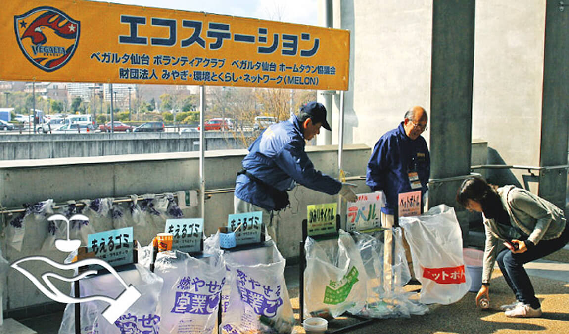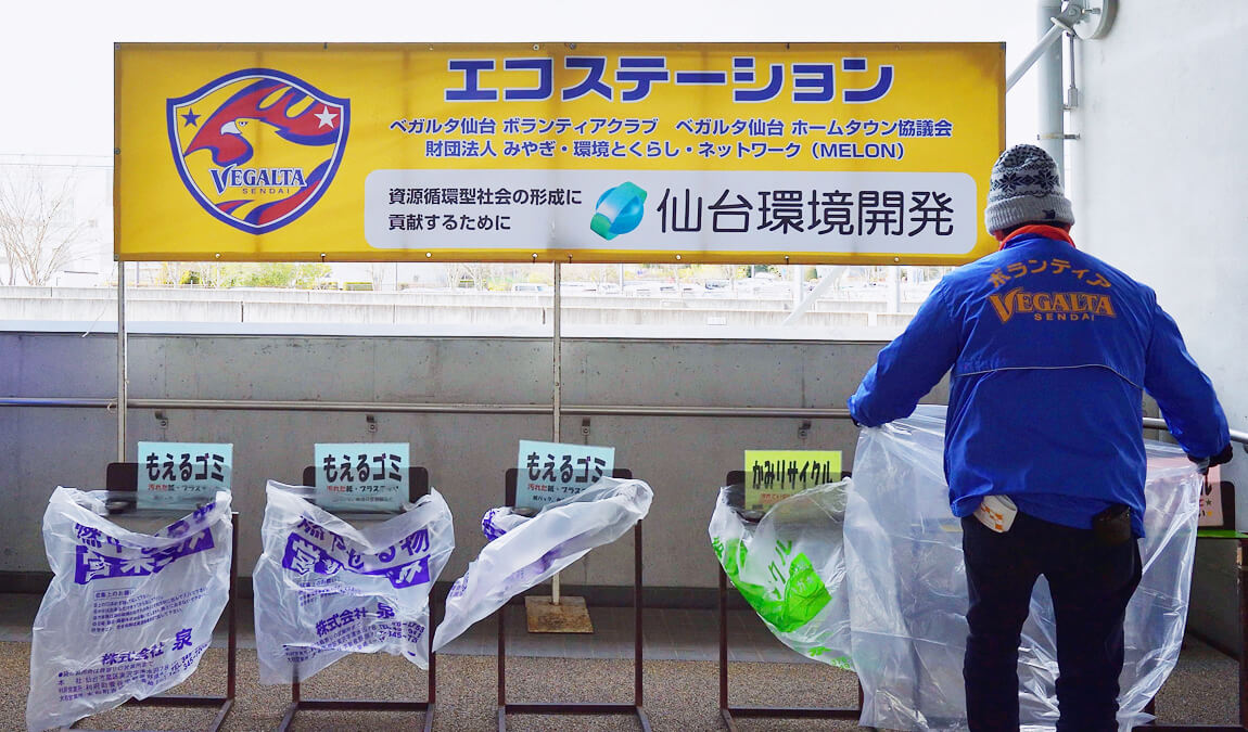 「ユアテックスタジアム仙台を日本一きれいなスタジアムに!」とうい趣旨の下、ベガルタ仙台・ボランティア・市民団体・企業・そしてお客様が一体となり、ユアテックスタジアム仙台から発生するゴミの削減、並びに資源節約を目指すプロジェクトです。プロジェクト以前、ユアテックスタジアム仙台のホームゲームでは、1試合につきゴミ袋数にして500袋以上のゴミが発生し、金額にして1試合約¥100,000にものぼりました。本プロジェクトでは、この処理費用を減らし、チーム資金を有効活用することにより、チームの強化にも繋げていきたいと思います。皆さんもベガルタ仙台と共に、身近で簡単なことから環境活動を始めてみませんか?