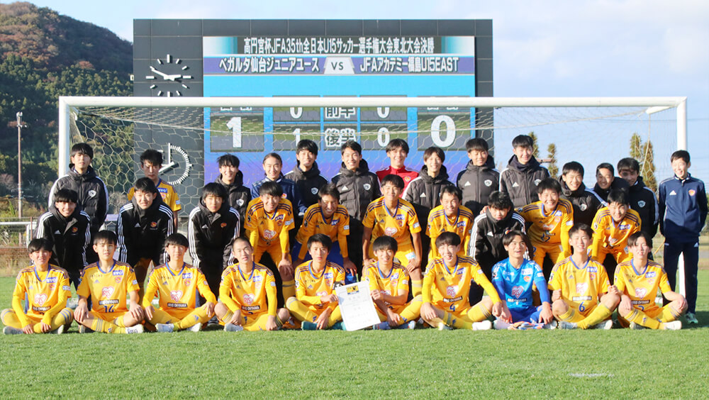 11月11日に行われた「高円宮杯JFA第35回全日本U-15サッカー選手権大会東北大会」の結果は以下の通りです。ベガルタ仙台ジュニアユースは2年ぶり13回目の全国大会出場を決めました。