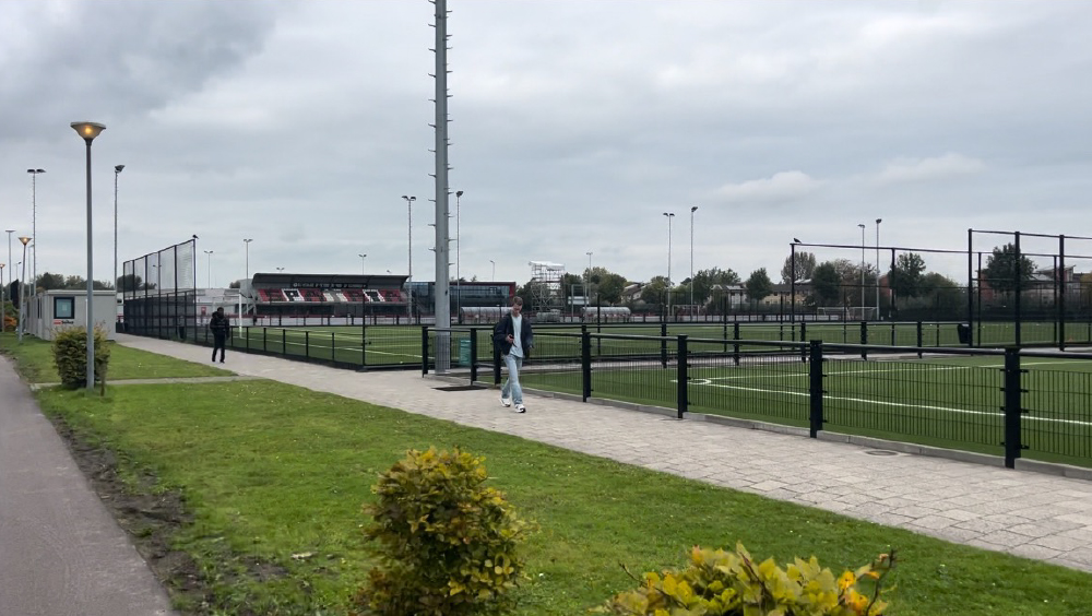 10月12日(土)午後は練習参加をするスパルタ・ロッテルダムの施設を訪問。スパルタは、1888年に創設され、ロッテルダムを本拠地とするオランダ最古の歴史をもつサッカークラブである。U-9からトップチームまでが1つのクラブハウスで活動。グラウンドは、アカデミーは人口芝4面(内1面はスタンド付き)、トップチームは天然芝2面の素晴らしい施設であった。