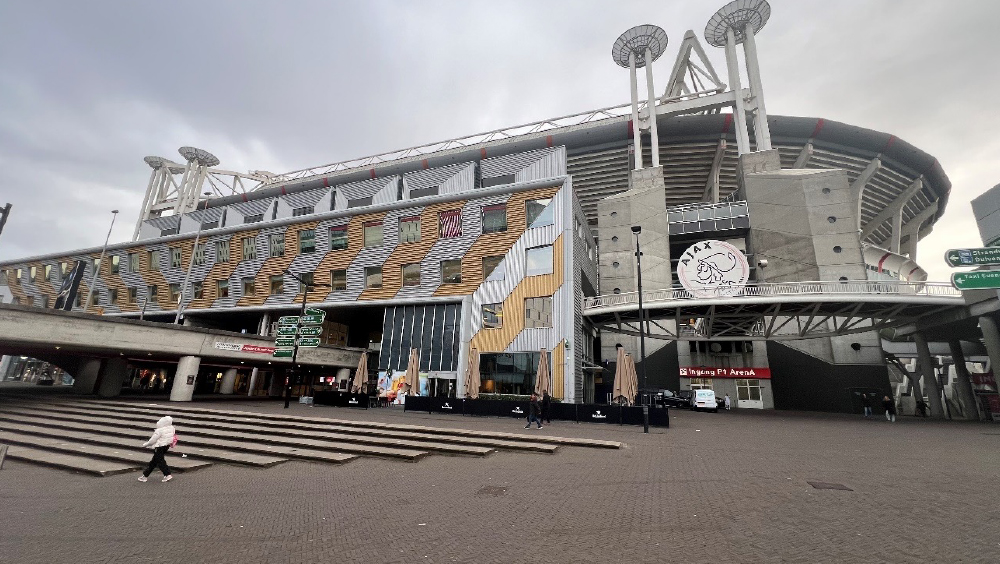 10月14日(月)午前は、アムステルダムにあるアヤックスのホームスタジアム ヨハン・クライフ・アレナのスタジアムツアーに参加。同スタジアムは、スタジアム内に高速道路が走っており、高速道路からそのままスタジアム駐車場へアクセスができる。スタジアムから電車の駅であるアムステルダム・ベイルマー・アレナ駅まで、徒歩5分となっており、平日はスタジアム内の駐車場を一般に開放することで、アムステルダム中心部の車の混雑を避ける役割を担っているとのこと。収容人数は53,320人で、屋根は開閉式、トロフィールームなどもある素晴らしいスタジアムであった。