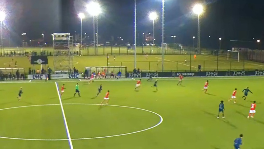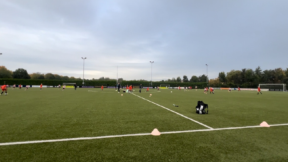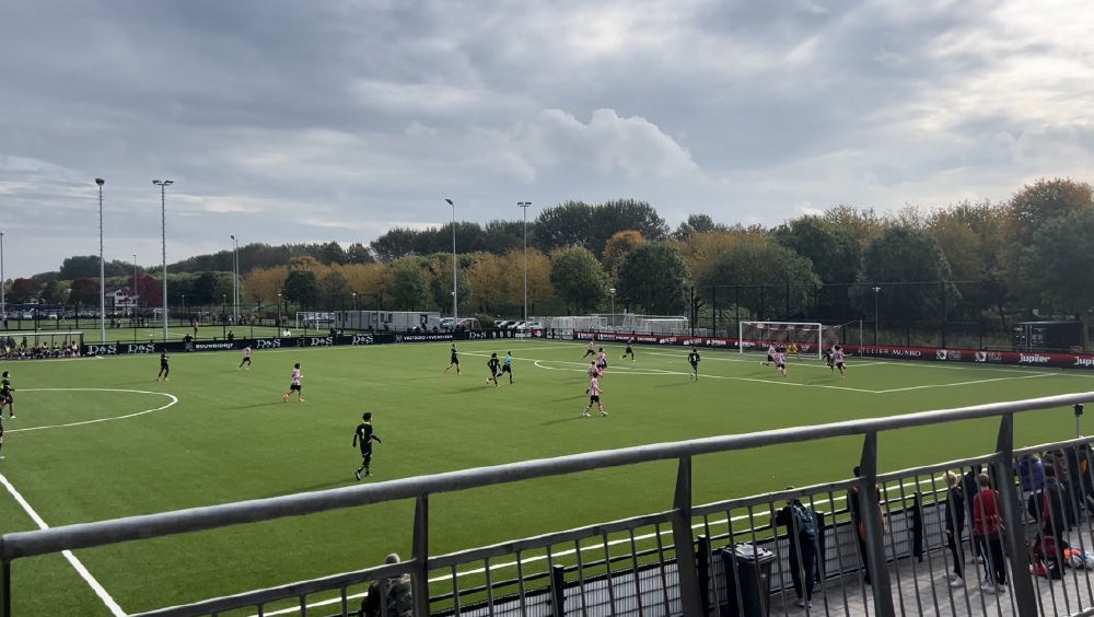 U-12は、Volendamとの 8人制の試合が行われていた。試合は20分×4本で行われ、フルピッチを半分に分けて、1チームを2つに分けて両面で同時進行、アウトオブプレーからのドリブルインあり、2本終わりで左右ピッチのチームを入れ替え、最終は左右ピッチの合計得点で競うというルールで行われていた。1チーム各学年20名前後とのことであったが、ほぼ休んでいる選手がおらず、プレータイムが多く、非常に考えられたレギュレーションであった。