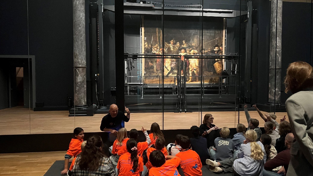 10月17日(木)午前中は、アムステルダム国立美術館を訪問した。オランダを代表する多くの作家の作品が展示されていた。特に、レンブラント・ファン・レインの夜警には多くの人が集まっていた。18才以下は無料となっており、多くの子供たちが学校の授業の一環で先生が説明している様子が各所で見られたことも印象的だった。