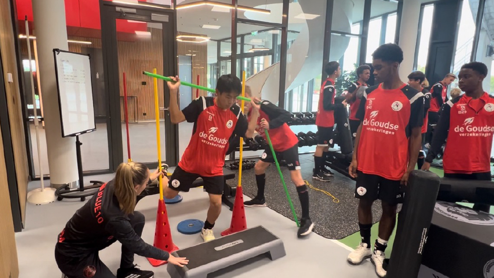 午後は、スパルタU-16でのジムトレーニングから始まった。体幹トレーニングや爆発的に出力するようなトレーニングを実施。その後、ピッチでボールトレーニングを行った。また、トレーニングの後、両クラブのスタッフのみでクラブ紹介とアカデミーの取り組みについてプレゼンテーションとディスカッションを行った。