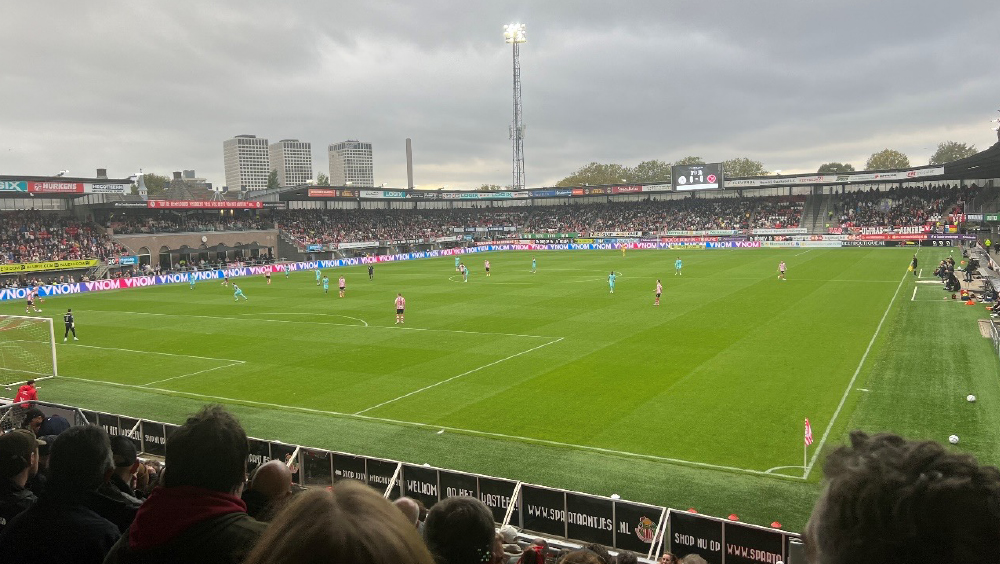 同日、オランダ1部リーグのSparta Rotterdam vs Almerecityの試合をスパルタホームのSpartastadion Het Kasteelで観戦した。スタジアムはオランダ最古のサッカー専用スタジアムで11,000人の収容。建物はレンガ造りで非常に雰囲気のあるスタジアムであった。前半早々にスパルタは失点し、0-2となるが、前半で3枚替えを行い、後半はスパルタがより、前線へのスプリントが増えて迫力が増し、2点追い付いて2-2でドローとなる見ごたえのあるゲームだった。