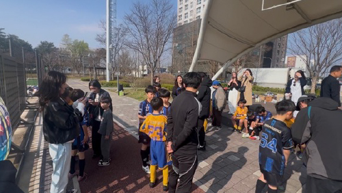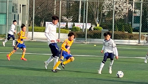 4月4日(土) 水原市内のデブドゥク公園にて水原FC U-12、U-11、GSキョンスクラブU-12、U-11、水原MB U-12、U-11と合計6試合の練習試合を行いました。フィジカルの違いやボールを奪う迫力を体感しながら20分×12本をタフに戦いました。試合後に水原MBの選手の家庭に2名1組でホームステイを行いました。言葉が通じない中で選手たちはコミュニケーションを取り、貴重な経験をいたしました。