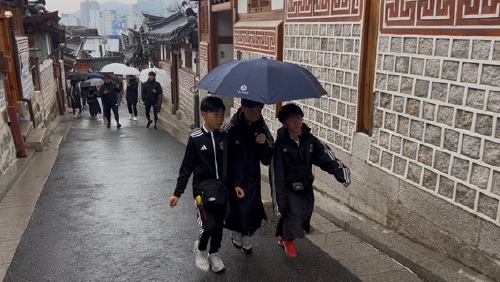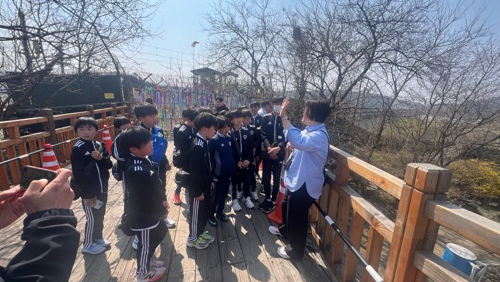 4月6日(月) 午前中は、首都ソウルの昔ながらの伝統家屋が立ち並ぶ北村韓屋村(プクチョンハノクマウル)を訪問した後、地下鉄で移動し、朝鮮王朝の初代国王が創建した景福宮(キョンボックン)を訪れました。午後は、水原市の鳥山総合サッカー場にてヨムギフンFCとキムヨンフFCと練習試合を行いました。相手には、小学6年生で180cm近い身長の選手もおり、土曜日同様にフィジカル面で差のある相手となりました。U-11とU-12でそれぞれ1本ずつ相手が変わりながら、各年代で25分×4本の試合を行いました。前半の2本は午前中の観光気分が抜けないまま試合に入り、U-11とU-12で全敗となりましたが、後半2本で巻き返し、U-11とU-12の25分×8本の合計で15-15のスコアとなりました。