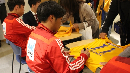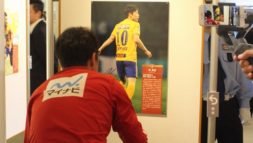 また、初日の16日には梁勇基選手、富田晋伍選手、道渕諒平選手によるサイン会を実施しました。整理券のためにお待ちいただいた人や帰宅途中に立ち寄った方などで賑わいを見せます。サイン会終了後には、選手がパネルへサインを入れ、パネル展後半には撮影スポットになっていました。