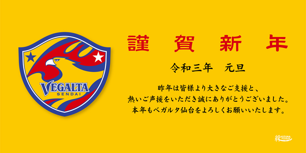 2021年は、ベガルタ仙台の未来への分岐点の年となります。被災地の希望の光になることを誓った東日本大震災から10年、再び立ち上がるとき「STANDIN' SENDAI」を合言葉に、強い覚悟を持って戦い続けます。市民、県民、行政、企業のみなさまと一体となり、幅広いご支援および熱い後押しをいただけるよう、職員一同で知恵を絞りながら、一歩ずつ一生懸命に前進いたします。