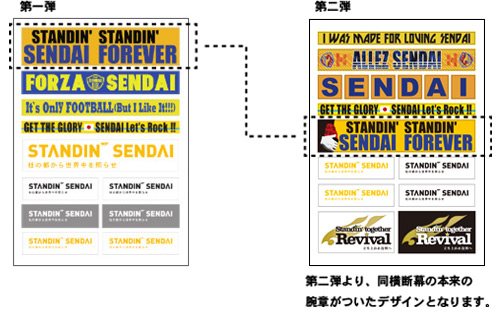 サポーターのみなさまからご提供いただいた「STANDIN’ STANDIN’ SENDAIFOREVER」の横断幕のデザインについて氣志團側のご許諾をいただきました。つきましては同横断幕の本来の腕章がついたデザインとなっております。
