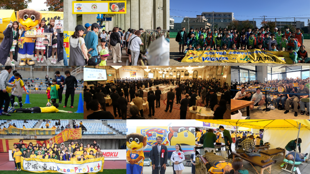 ベガルタ仙台は、地域とともに歩み地域とともに未来を創るために、市民・県民、各自治体、企業、学校、各団体など地域のすべてのステークホルダーの皆さまのハブとなり、パートナーシップで地域課題の解決に取り組み、地域とともに未来を創ることを念頭にさまざまな活動を展開しております。
