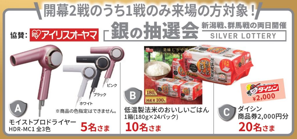 ※2/20(日)新潟戦は「銀の抽選会」のみ、応募を受け付けいたします。