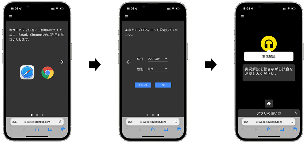 1. スタジアム実況配信サービスへアクセス