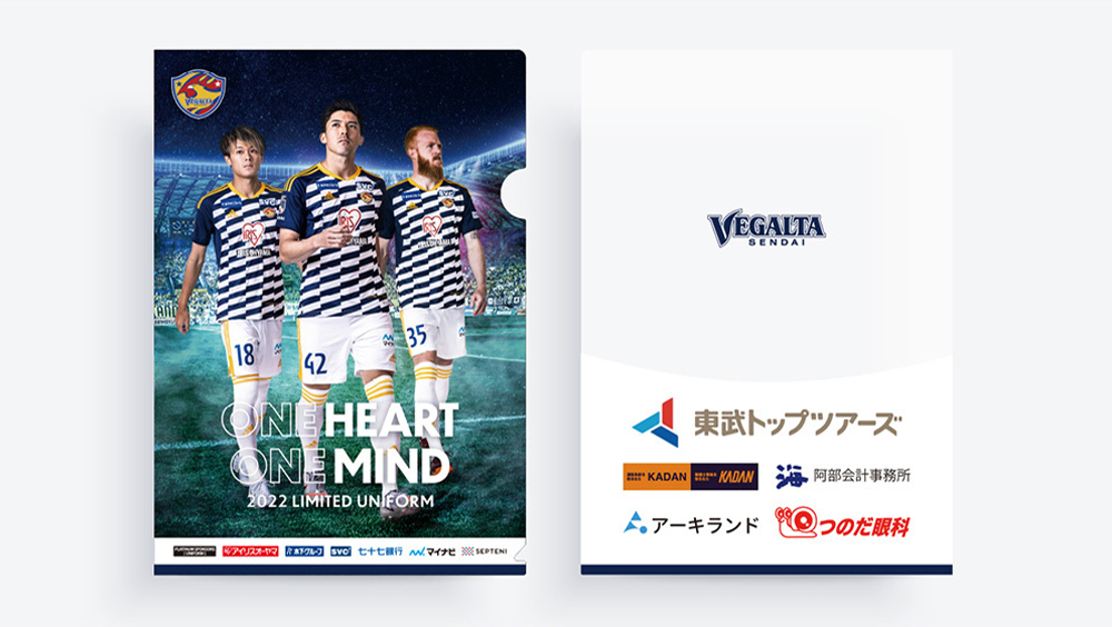 7月23日(土) 明治安田生命J2リーグ 第28節 V・ファーレン長崎戦にて、同試合で選手が着用する2022 LIMITED UNIFORMデザインのクリアファイルを来場者先着12,000名さまにプレゼントいたします。本企画は5社のご協賛により実現いたしました。感謝申し上げます。