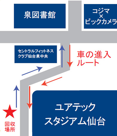 ※当日は「リサイクルでベガルタ仙台を応援しよう!! 500トン チャレンジ」回収ボックス(北ゲートエントランス総合案内)の設置はございません。