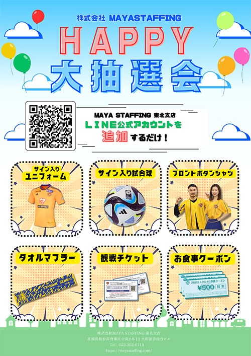 5月28日(日)、明治安田生命J2リーグ 第18節 ジェフユナイテッド千葉戦にて、シルバースポンサー MAYA STAFFINGさまがLINE友だち追加者限定の抽選会ブースを開催いたします。