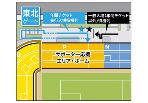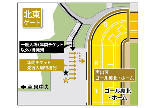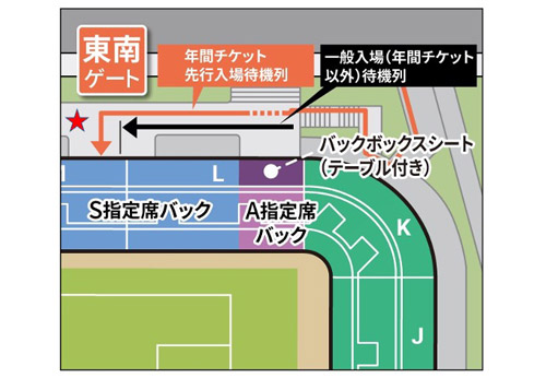 ホームゲームご来場のみなさまへ(年間チケット先行入場から一般入場(年間チケット以外の方)の待機列が解消されるまでのゲート運用)
